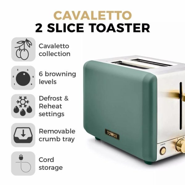 Kitchen Cavaletto Slice Stainless Steel Toaster Jade | Tower Housewares Toasters