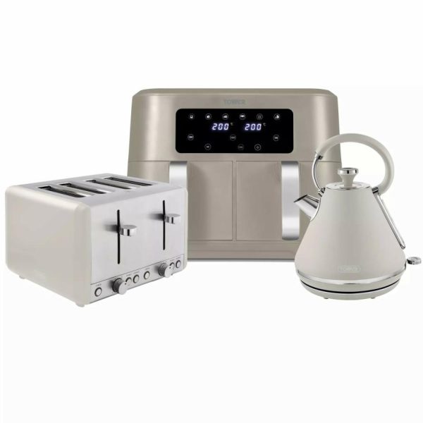 Kitchen Cavaletto Slice Toaster, Kettle & Dual Basket Air Fryer Latte | Tower Housewares Triple Sets