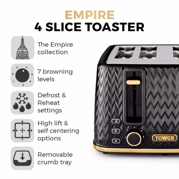 Kitchen Empire Slice Toaster Black | Tower Housewares Toasters