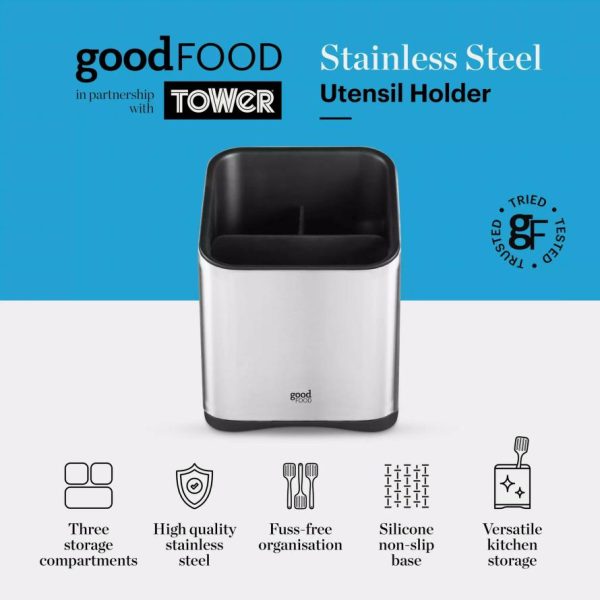 Kitchen Good Food Utensil Holder Stainless Steel | Tower Housewares Utensils