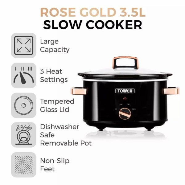 Kitchen Infinity . Litre Slow Cooker With Rose Gold Accents Rose Gold | Tower Housewares Slow Cookers quantity
