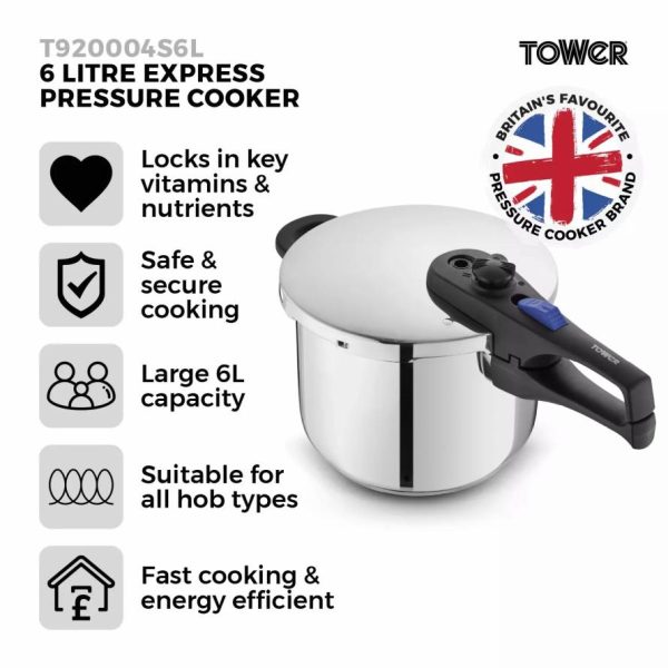 Kitchen High Dome Litre Pressure Cooker Aluminium | Tower Housewares Pressure Cookers