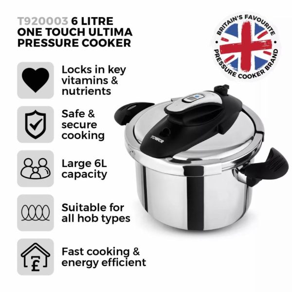 Kitchen High Dome Litre Pressure Cooker Aluminium | Tower Housewares Pressure Cookers