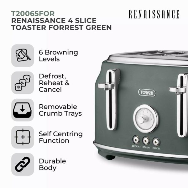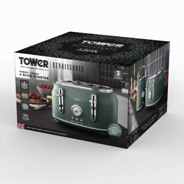Kitchen Renaissance Slice Toaster Forest Green | Tower Housewares Toasters quantity