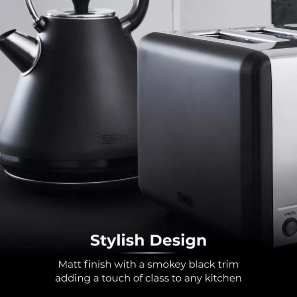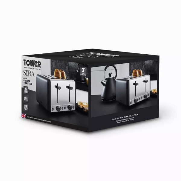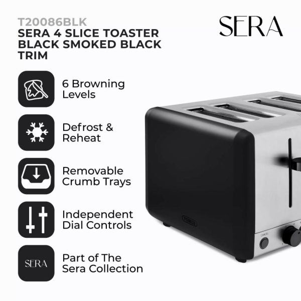 Kitchen Sera Slice Toaster With Smoked Chrome Trim Black | Tower Housewares Toasters quantity