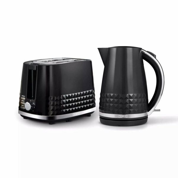 Kitchen Solitaire Slice Toaster & Kettle Set Black | Tower Housewares Toaster & Kettle Sets