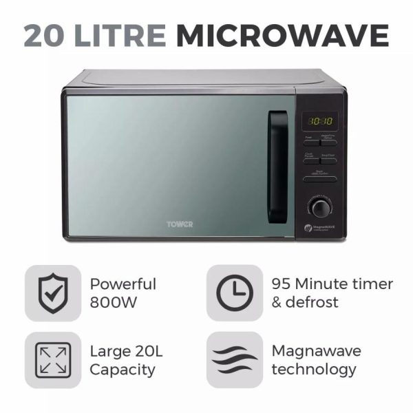 Kitchen Tower Litre W Digital Microwave With Mirror Door Black | Tower Housewares Digital