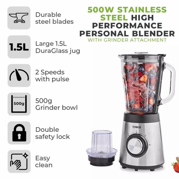 Kitchen W Glass Jug Table Blender Stainless Steel | Tower Housewares Blenders